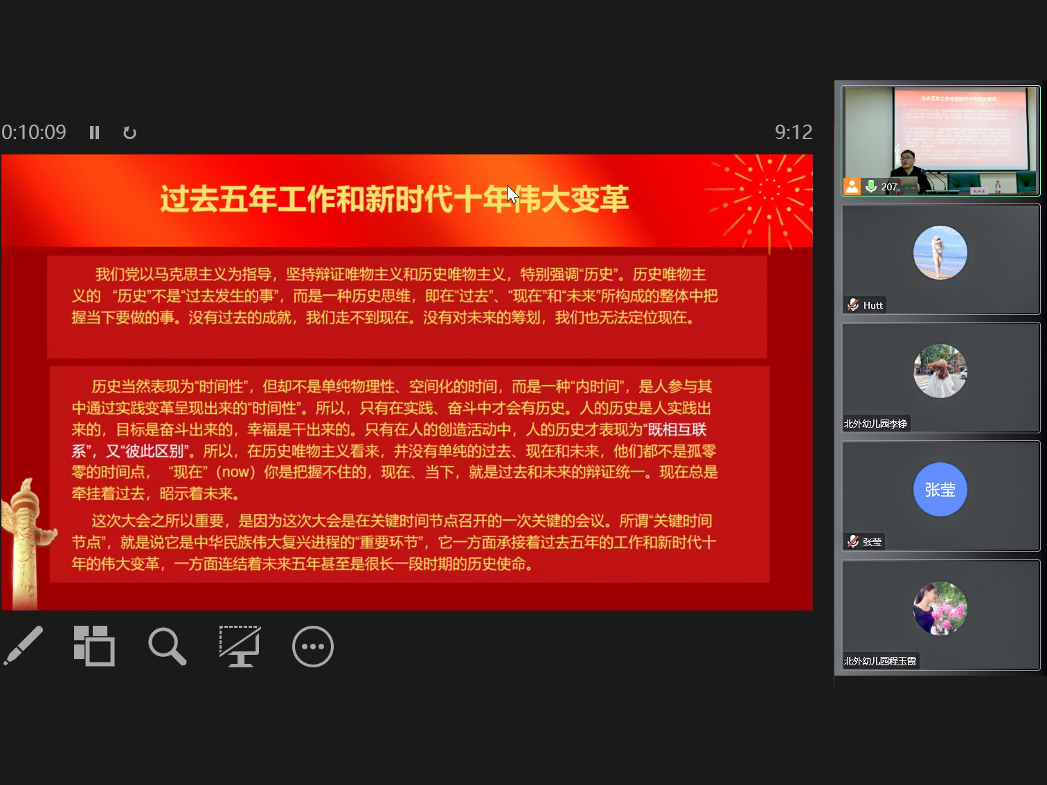 党总支组织委员、继续教育学院党支部书记曹彦琳表示,从党的“一大”到“二十大”,中国共产党一张蓝图绘到底,团结带领中国人民创造了令人惊叹的发展奇迹。在工作中,我们也应当做好规划,抓好落实,助力学院教科研工作高质量发展。
