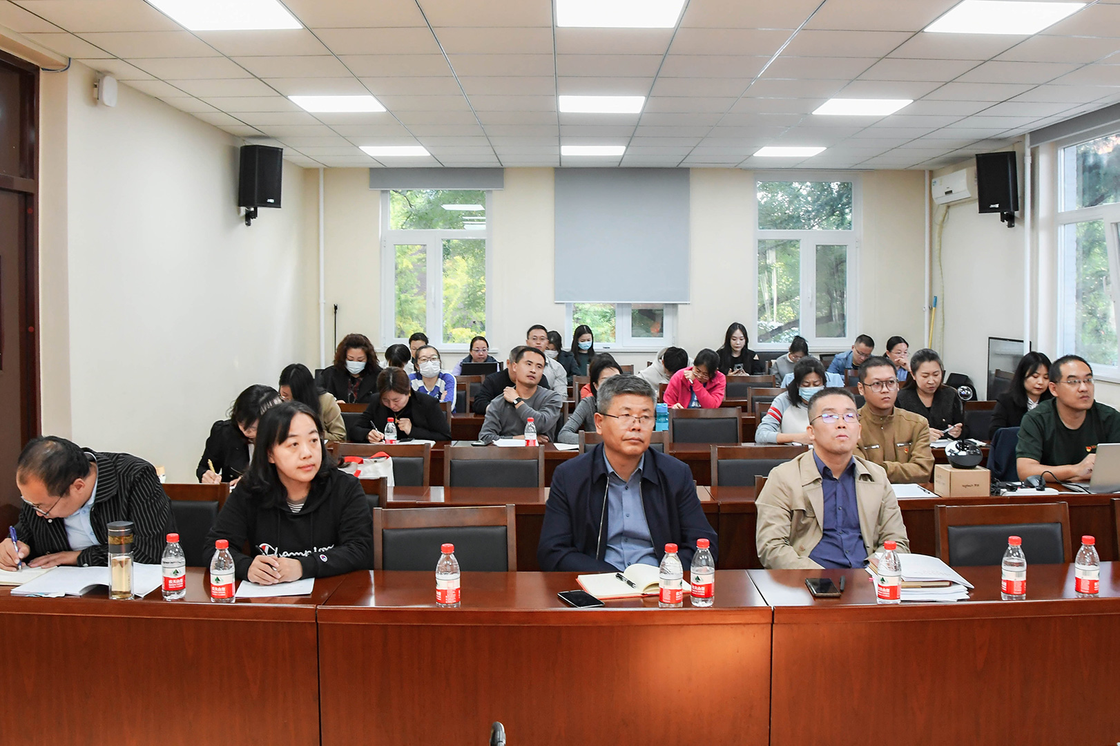 与会人员观看了中央电视台《新闻联播》节目对全国宣传思想文化工作会议和第三届“一带一路”国际合作高峰论坛的报道视频。