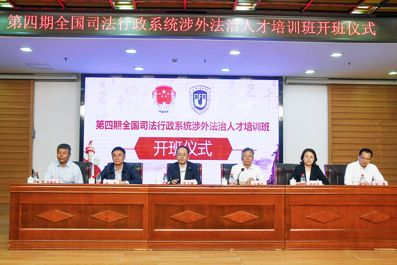 贾文键向新学员表示欢迎,对司法部给予我校的信任与支持表示感谢。他强调,加强涉外法治建设是推进高水平对外开放、应对外部风险挑战的当务之急,尽快培养一支高素质涉外法治人才队伍至关重要。他介绍了北外的历史传统、学科建设、社会服务及人才培养成果,回顾了与司法部多年来的深厚友谊,并鼓励各位学员秉承“兼容并蓄、博学笃行”的北外校训精神,在繁杂多变的国际社会中坚守初心、铭记使命,在亟待开拓的业务领域中践履所学、进中有为。