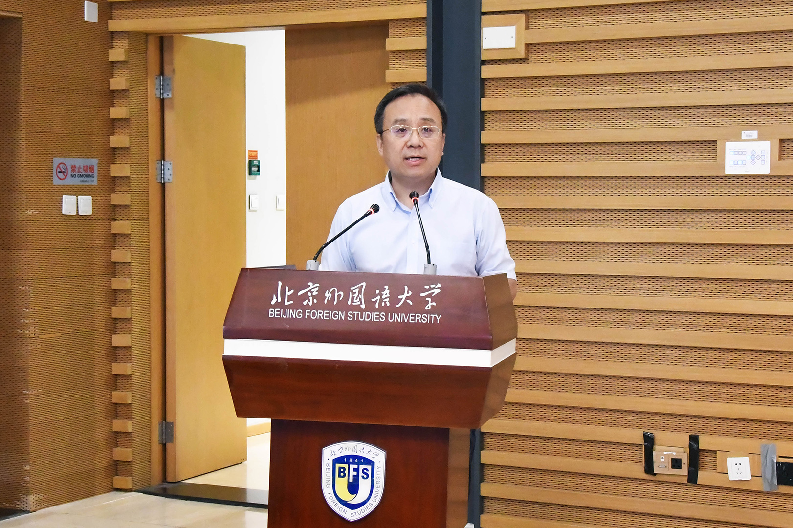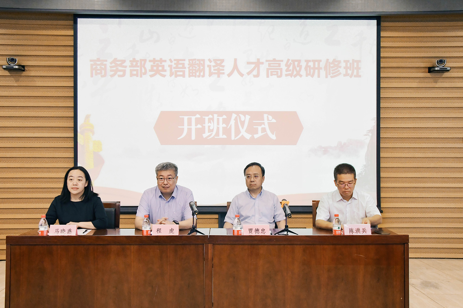 程虎回顾了部校双方开展外语培训、干部培养的良好成果,向北外领导的大力支持和老师们的辛勤付出表示感谢,传达了商务部党组对加强特色人才队伍培养、扩大复语人才储备的部署要求。他表示,举办此次研修班是多渠道、专业化加强对高级翻译人才接续培养的重要举措,商务部党组高度重视。他希望,全体学员珍惜机会、学出实效,严格纪律、严肃学风,结合实践、学以致用,为国家商务工作高质量发展贡献力量。