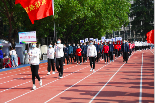 上午8时,校运会在学校体育场隆重开幕。伴着运动员进行曲的雄壮音乐,我院师生在院领导的带领下,喊着嘹亮的口号、迈着整齐的步伐,意气风发、精神抖擞地走过主席团,展示了积极向上、奋发进取的精神风貌。