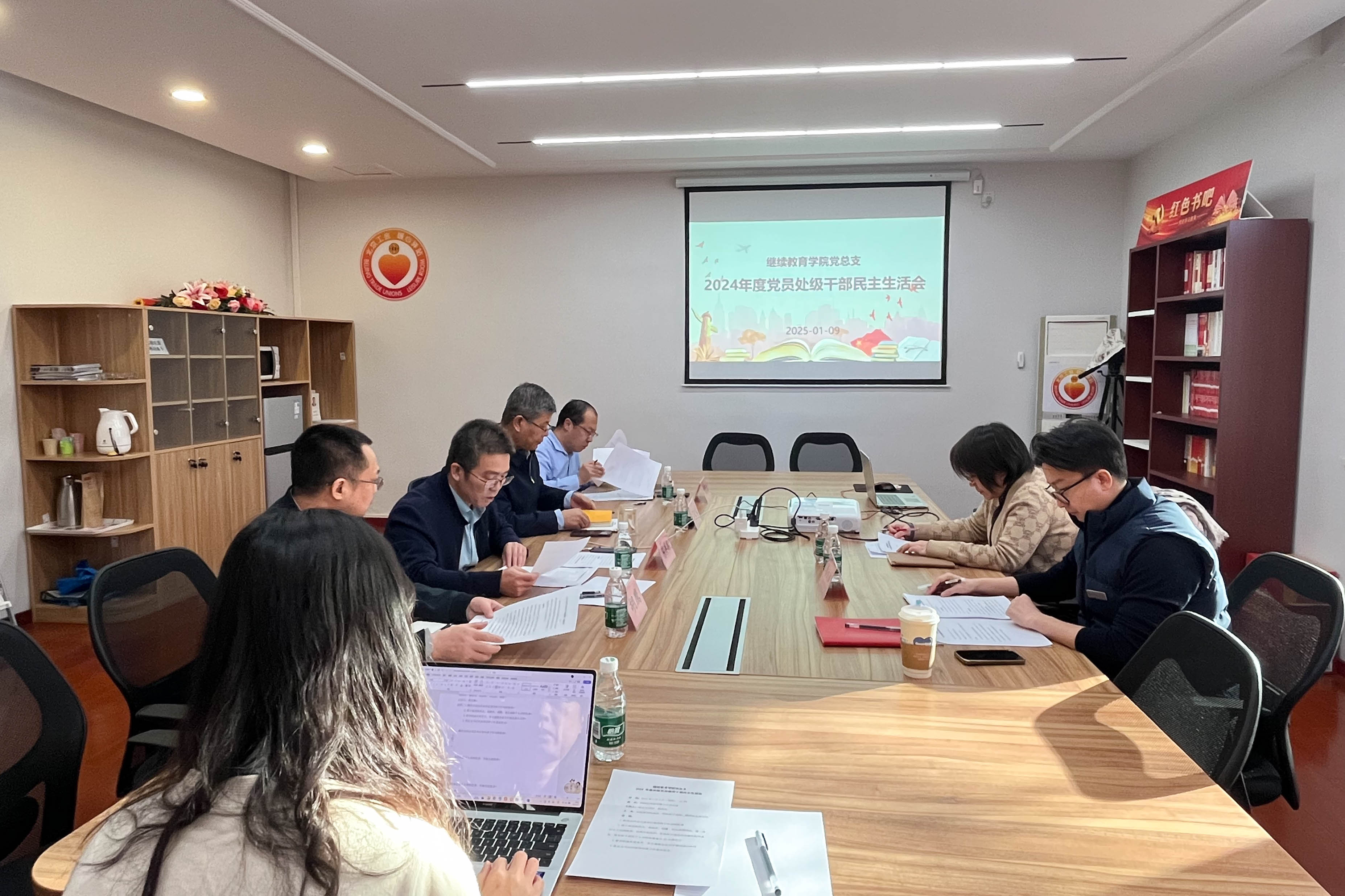 1月9日下午,继续教育学院党总支2024年度党员处级干部民主生活会在西校区壹教学楼216会议室召开。学校督导组成员财务处处长苑雪芳、后勤与基建处副处长李文斌到会督导。会议由党总支书记陈洪兵主持。