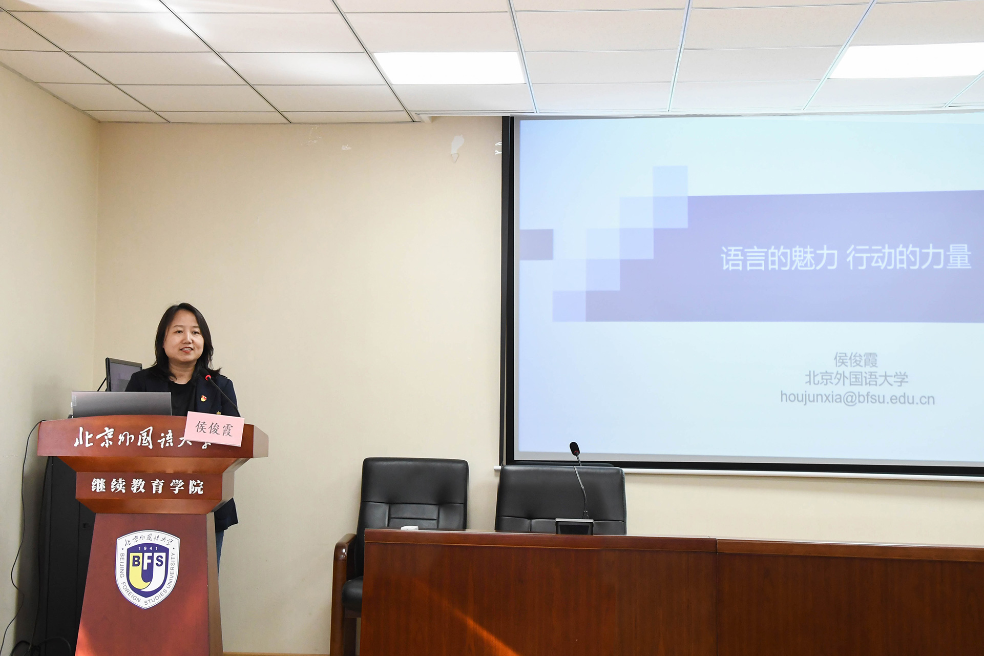 围绕习近平总书记在全国两会上的重要讲话精神和全国两会有关教育的重要论述,学院组织党员干部、教师结合工作实际开展学习交流分享。特别邀请专用英语学院党总支书记、院长侯俊霞就弘扬和践行“新时代教育家精神”作专题报告。侯俊霞教授以“语言的魅力,行动的力量”为题从教师信念、我的梦想、关键事件、我们的梦想四个方面,结合个人成长、专业探索、援疆支教的生动实例分享了自己关于执教育人、师者担当、教师发展的感悟和思考。讲座娓娓道来、感人至深,引起与会教师强烈共鸣,既是一次深刻的师德师风教育课,也是一次外语教师专业发展课。