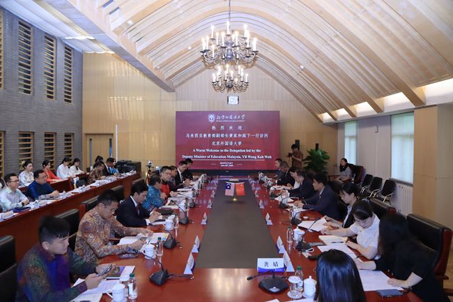 6月18日,马来西亚教育部副部长黄家和访问北京外国语大学。北外校长、党委副书记贾文键,党委常委、副校长赵刚会见黄家和一行。