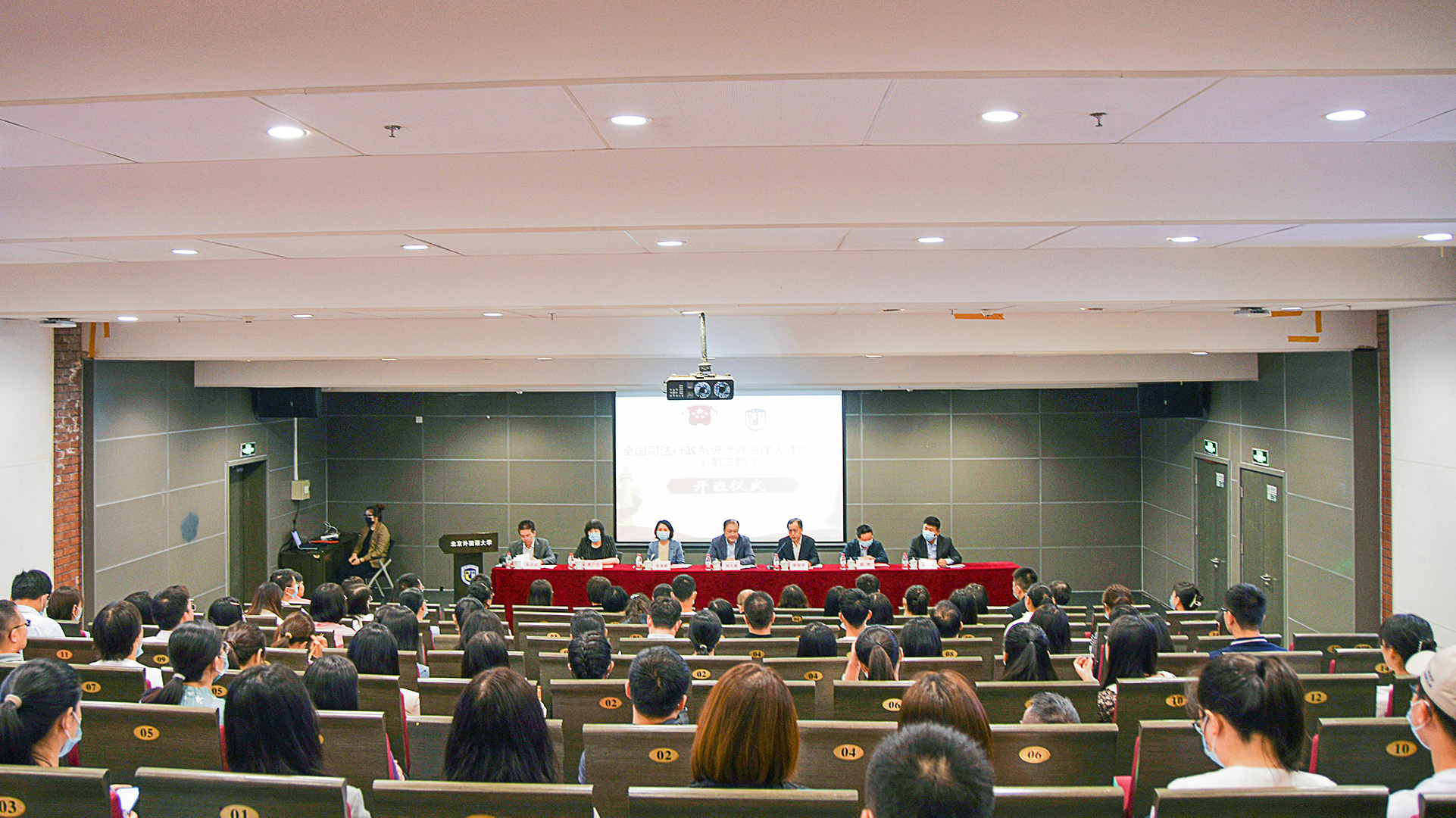 开班仪式上,全体与会人员起立,奏唱《中华人民共和国国歌》。