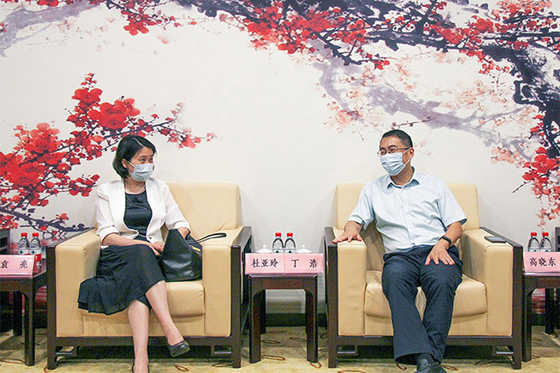 仪式开始前,丁浩与杜亚玲就校部进一步深化合作进行了会谈。