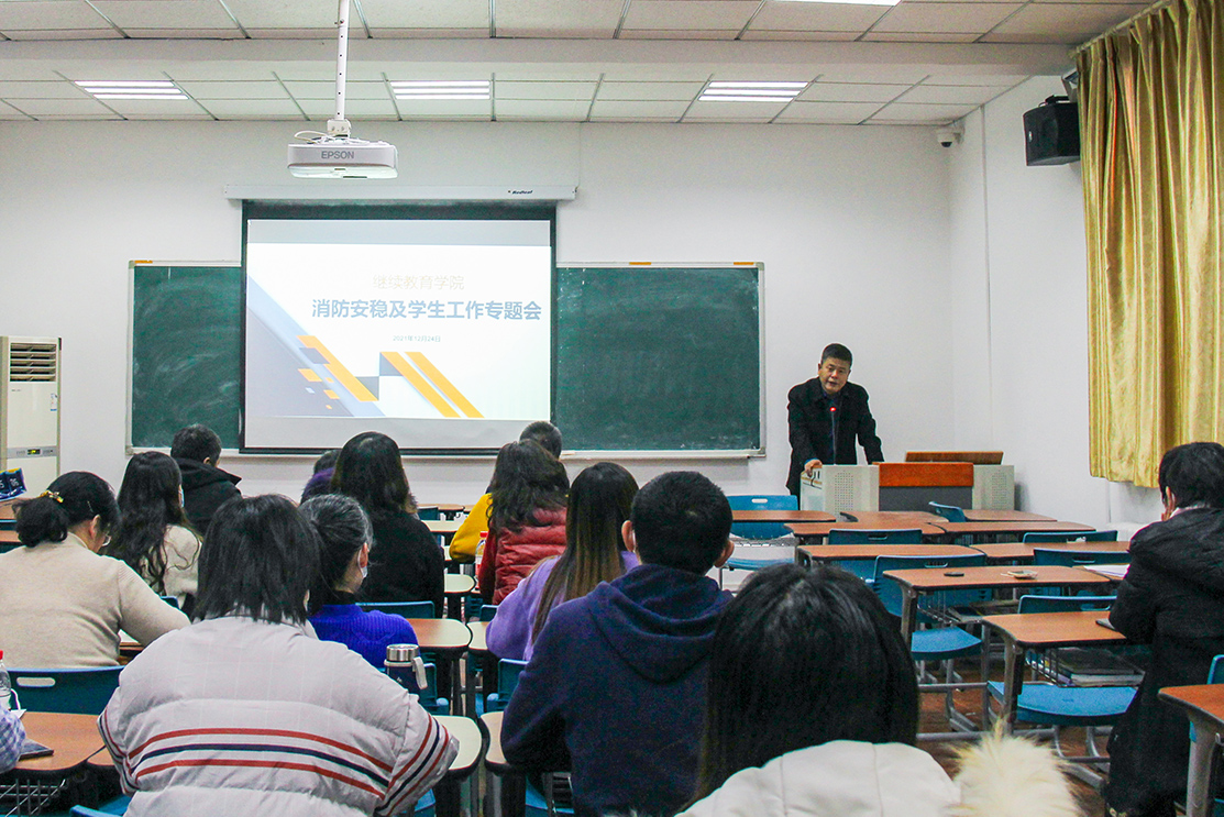 12月24日下午,我院在西校区壹教学楼101教室召开消防安稳及学生工作专题会。学院党政联席会成员,部门主任,综合服务办干部,留学预科部和高中留学部(北外校区)全体班主任、学生工作干部参加会议。会议由网络教育学院、继续教育学院党总支书记陈洪兵主持。