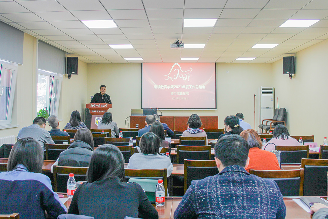 12月29日上午,继续教育学院2021年度部门述职工作总结会在西校区壹教学楼207会议室召开,学院党政联席会成员、各部门主任及负责人三十余人参加了会议。会议由副院长马晓燕主持。