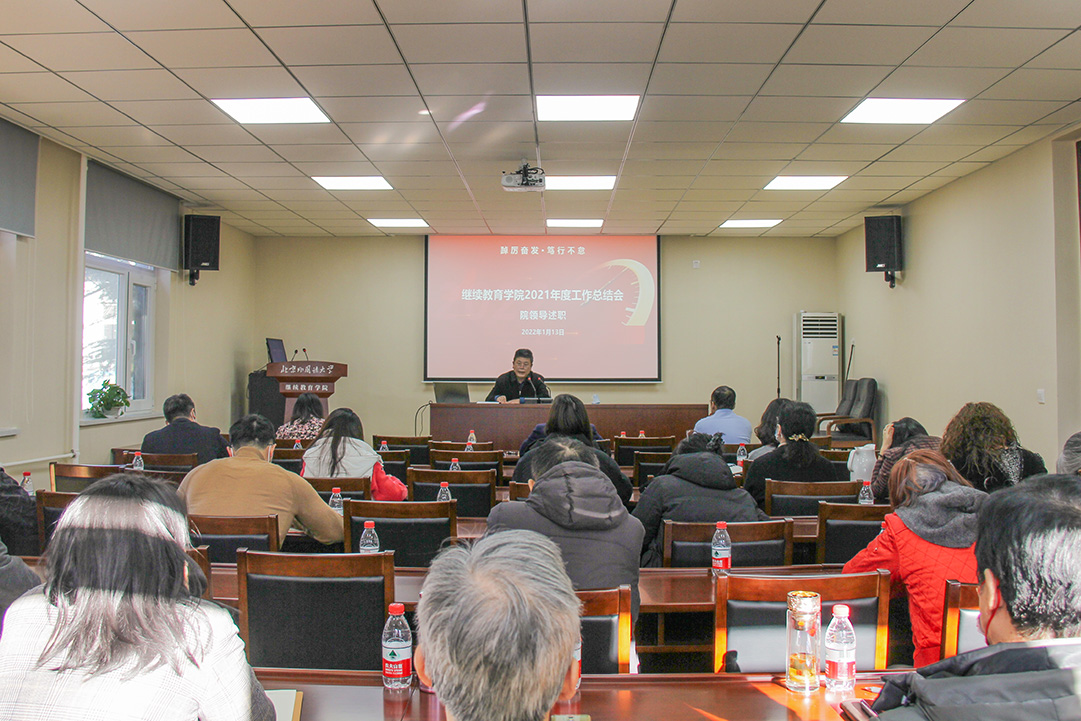 1月13日上午,继续教育学院2021年度工作总结及院领导班子述职会在西校区壹教学楼207会议室召开,学院党政联席会成员、各部门主任及负责人三十余人参加了会议。会议由副院长马晓燕主持。