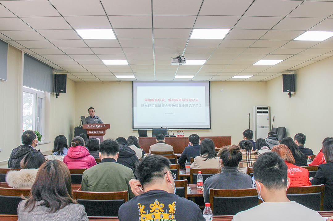 全体党员、部门主任等现场参会,继续教育学院全体教职员工线上参会。